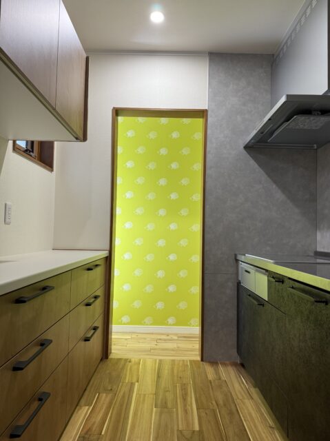 完成見学会には、メーカー欠品で間に合わなかったパントリーのクロスが完成